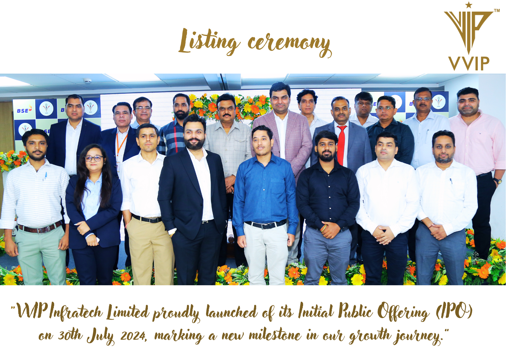 VVIP Infratech Limited, part of the VVIP Group and led by Mr. Praveen Tyagi since 2001, is a premier Class “A” civil and electrical contractor. Specializing in sewer treatment plants, water facilities, roads, and electrification, it is a trusted name across northern India. With innovation, automation, and timely execution, VVIP delivers engineering excellence and lasting value—building not just projects, but trust and enduring legacies. VVIP Infratech Limited is more than just a real estate company — it is a vision that has transformed into a legacy of excellence, trust, and value creation over the last two decades. With every brick we lay and every project we deliver, we reaffirm our promise: to not just build structures, but to build trust, lifestyles, and enduring legacies.In July 2024, VVIP Infratech Limited launched its landmark IPO, which received an overwhelming response with an overall subscription of 236.92 times. Retail investors subscribed 181.73 times, QIBs 168.45 times, and NIIs an exceptional 456.82 times. Listed on July 30, 2024, the IPO marked a historic moment, validating the company’s performance and positioning it as a strong, promising player in India’s real estate landscape.